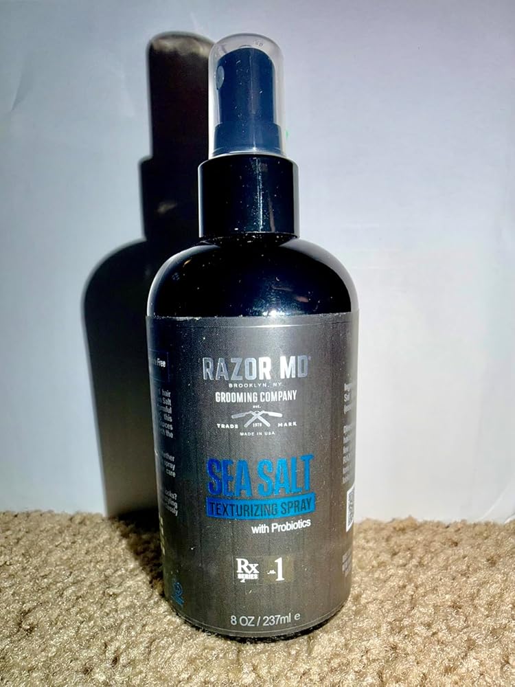 Step 2. Our Sea Salt Texturizing Spray delivers texture with purpose—effortless, elevated, and undeniably masculine. Can be used as a Pre-Styler, prior to using a RAZOR MD Pomade, Forming Cream or Fiber for enhanced styling.